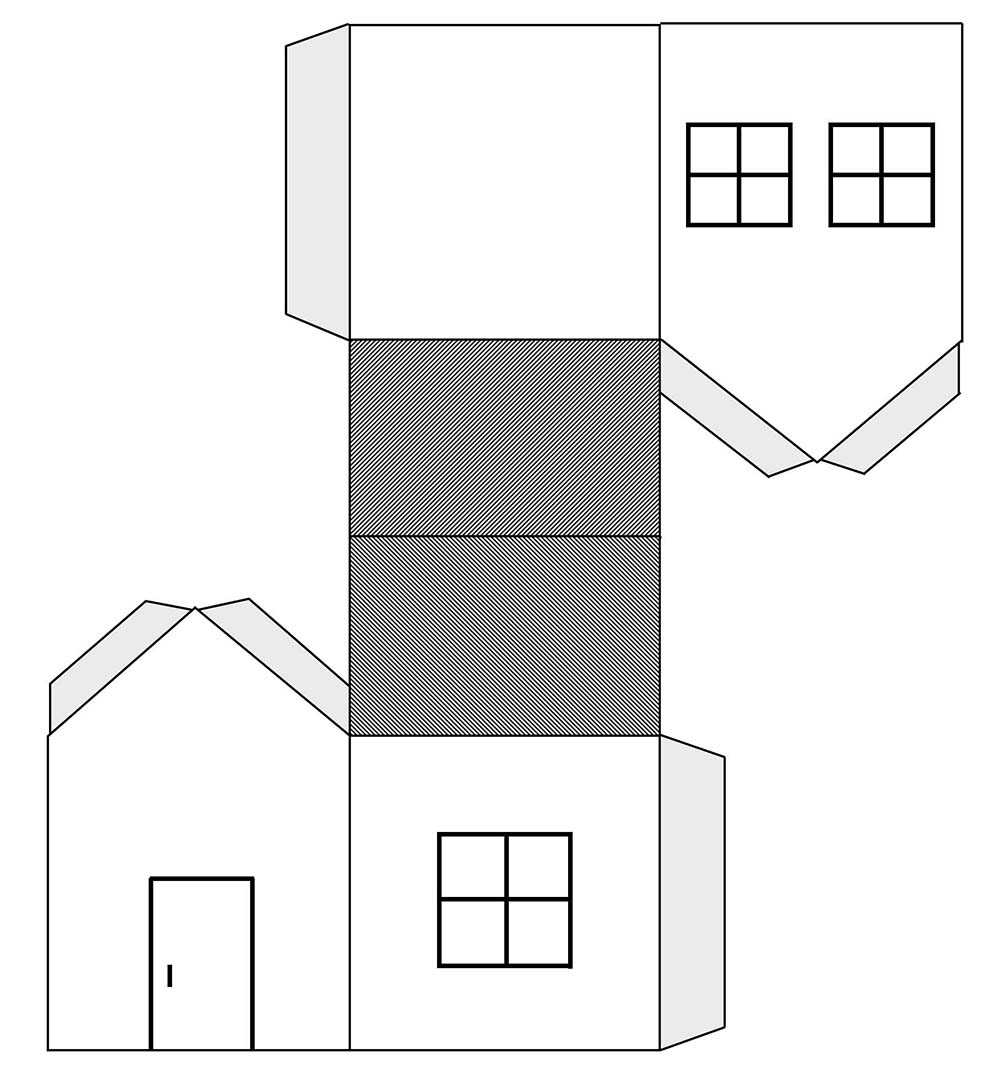 В предыдущем примере нужно было склеивать домик из отдельных частей, а можно использовать такие схемы, в которых дом начерчен в развернутом виде целиком.