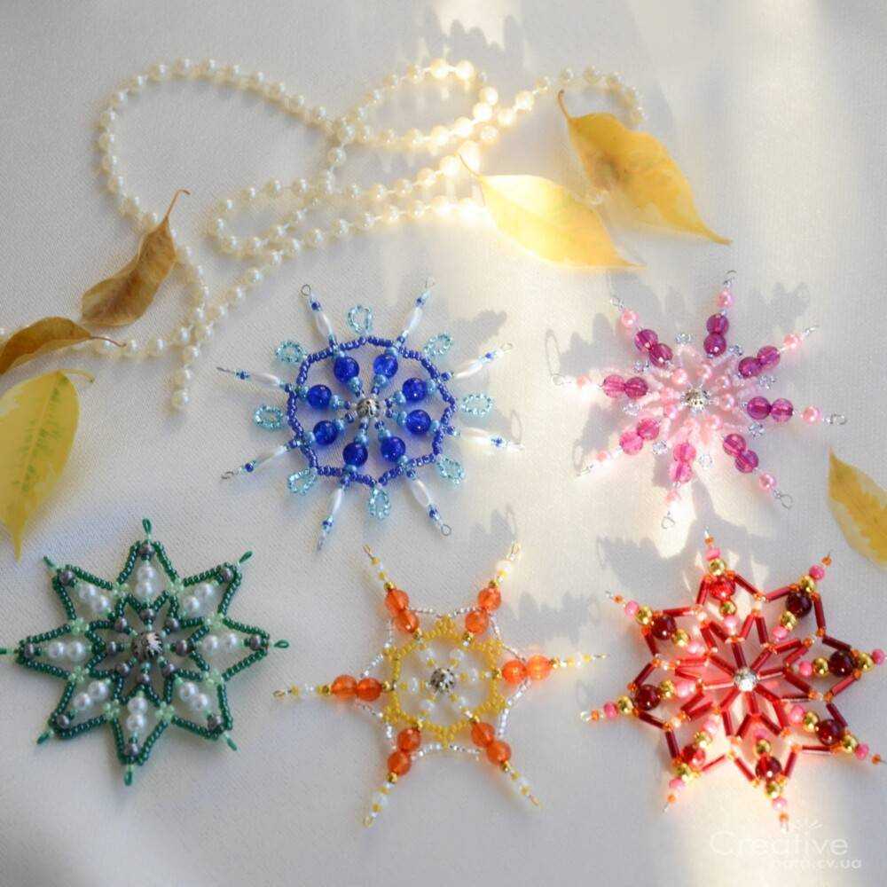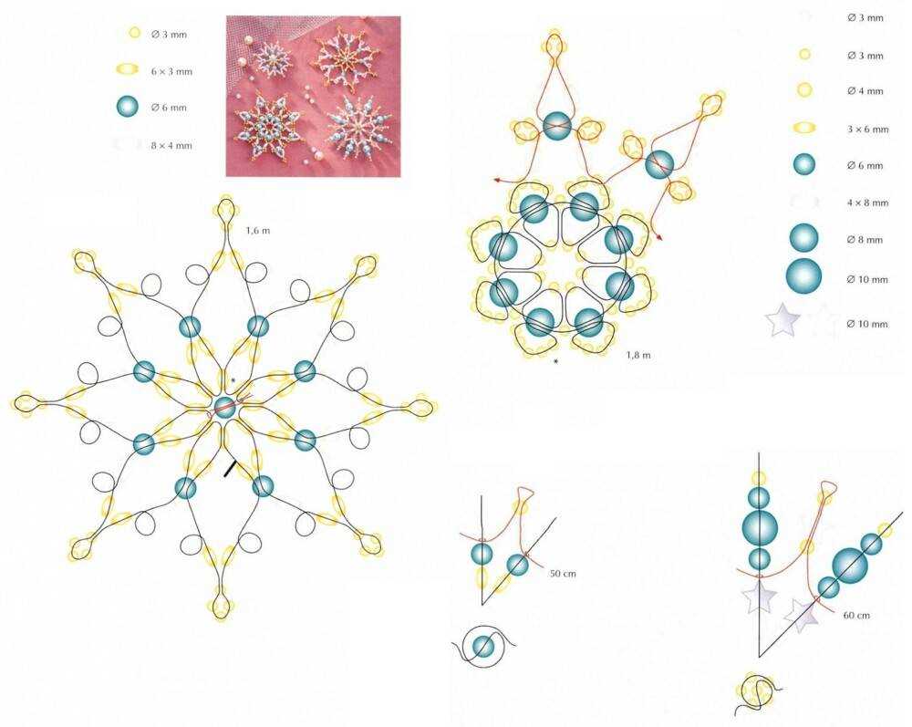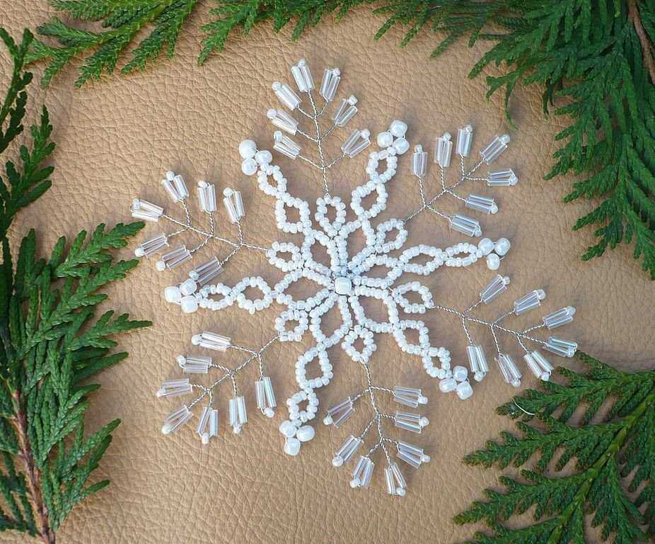 Не обязательно делать снежинки только из бумаги. Представлю вам схемы из бисера, может когда-то вы уже делали такие. Плетения совсем не сложные, а получается очень красиво и необычно.