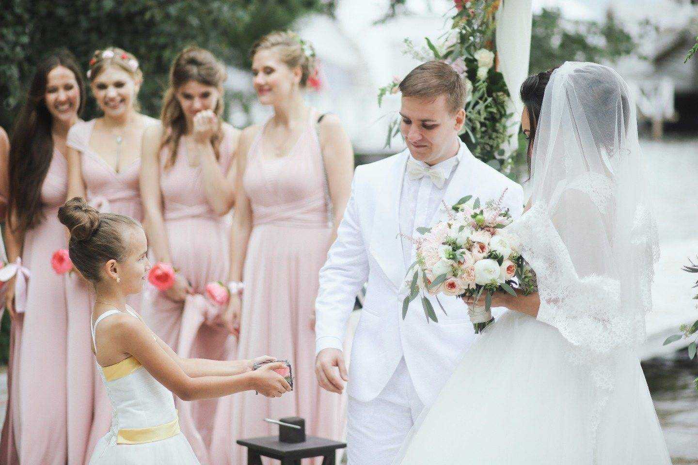 Затем ведущий собрал всех гостей, и началась наша трогательная церемония. Было безумно волнительно, когда папа вел меня под руку к жениху, и все гости смотрели на нас с счастьем в глазах. После церемонии я запустила свою девичью фамилию в воздух на шариках в окружении своих подруг. На банкете для гостей ведущий приготовил интересные интерактивные конкурсы, например, гости пытались угадать, какие необычные факты из нашей жизни правдивы, а какие нет.
