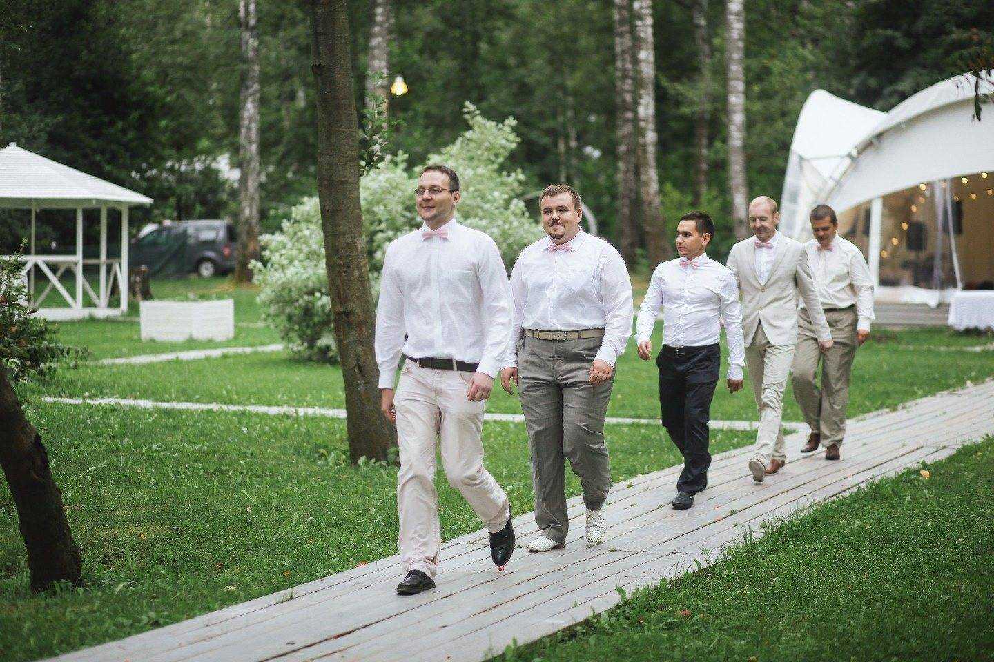 Что касается жениха, ему необязательно облачаться в розовый, бежевый или персиковый костюм – цветовое настроение можно подчеркнуть при помощи аксессуаров (галстука, бутоньерки, шляпы, или пудровой сорочки).