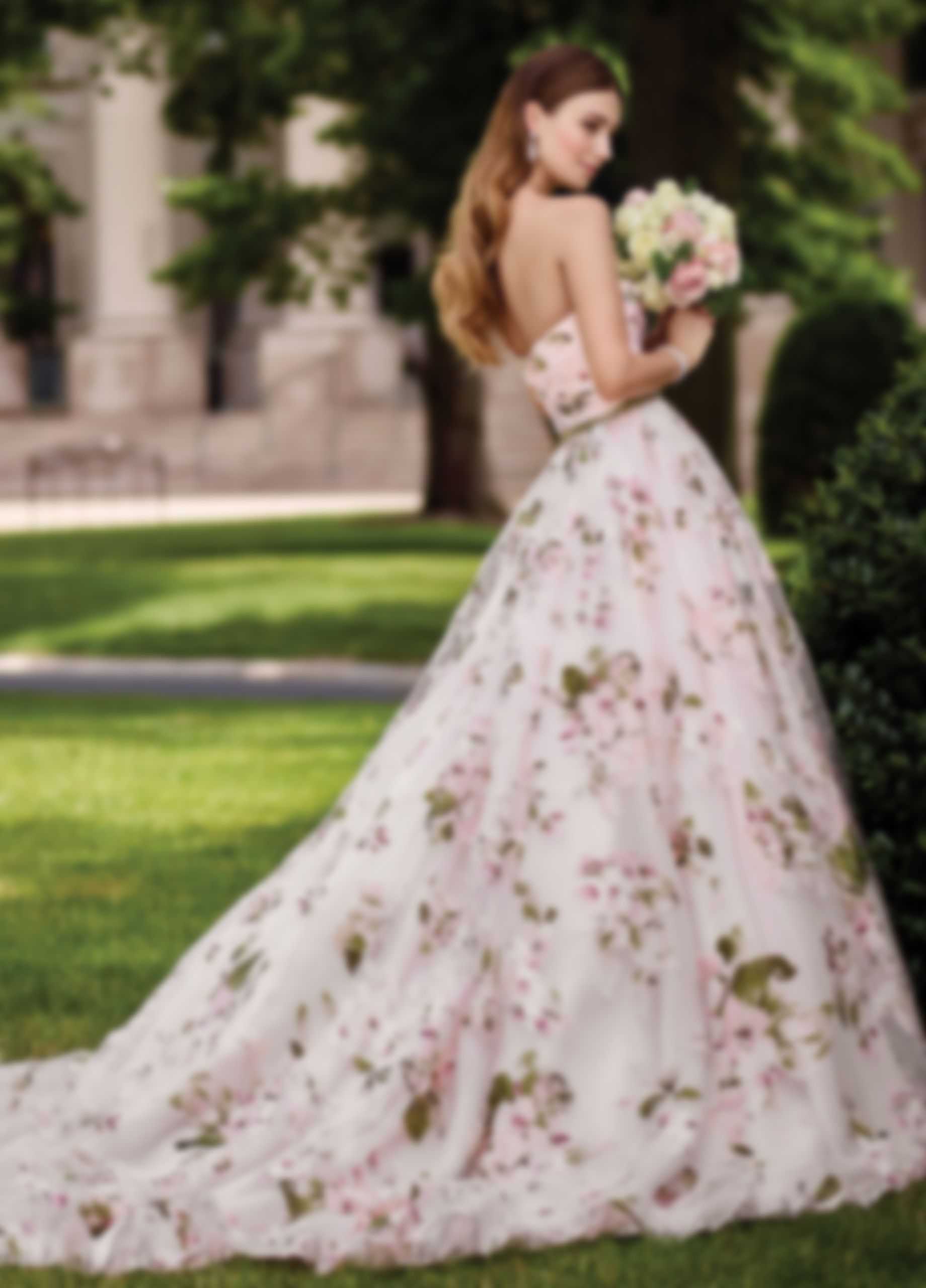 В некоторых коллекциях можно заметить свадебные платья с цветочным принтом. Этот тренд также можно использовать для своей свадьбы.