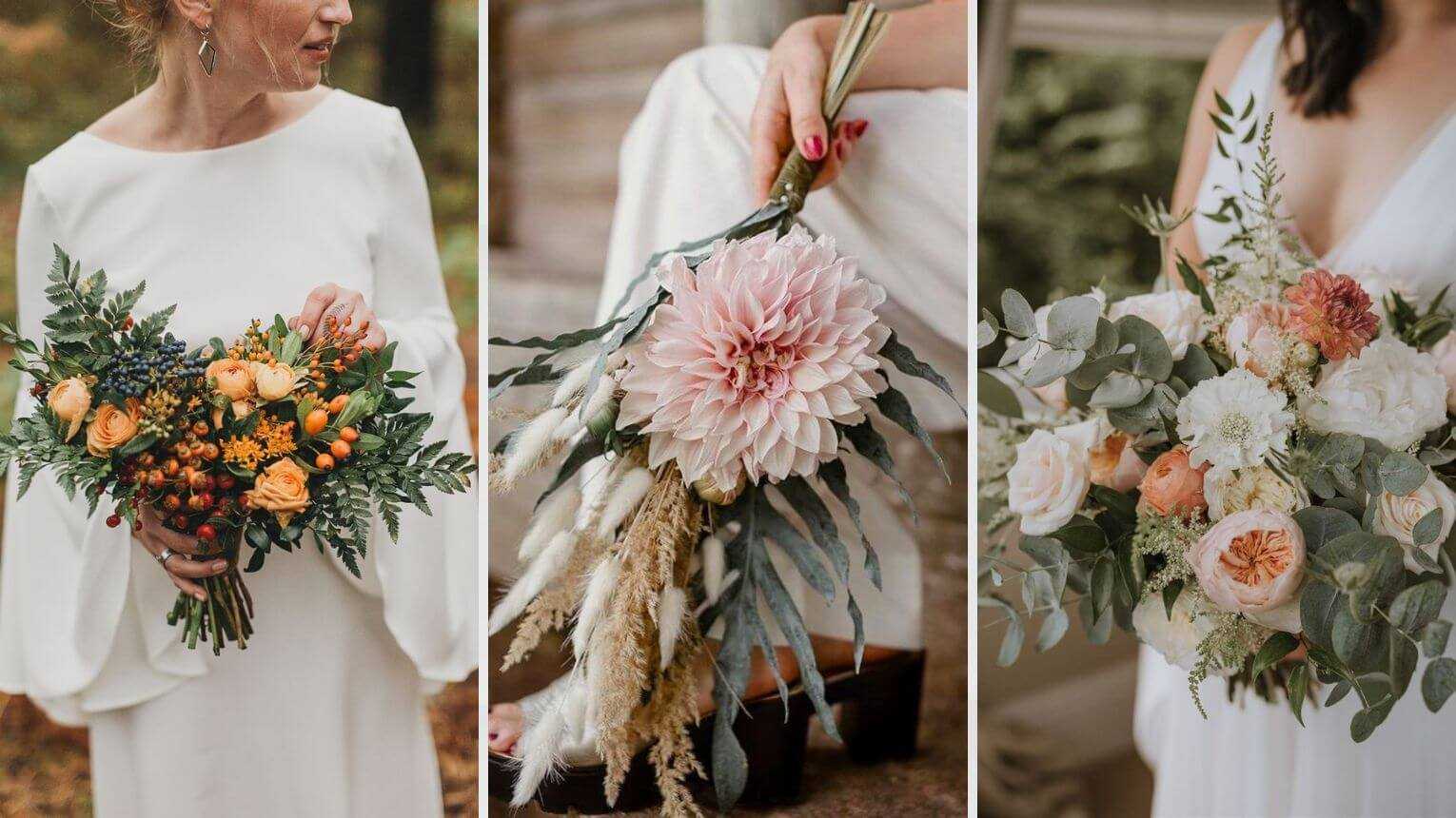 Букет невесты следует составить из полевых и луговых цветов и трав, колосков пшеницы, сухоцветов.