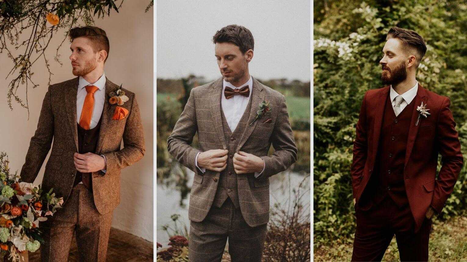Цветовая гамма зависит от наряда невесты, но мы рекомендуем выбирать костюмы таких оттенков, как: коричневый, темно-зеленый, серый или песочный.