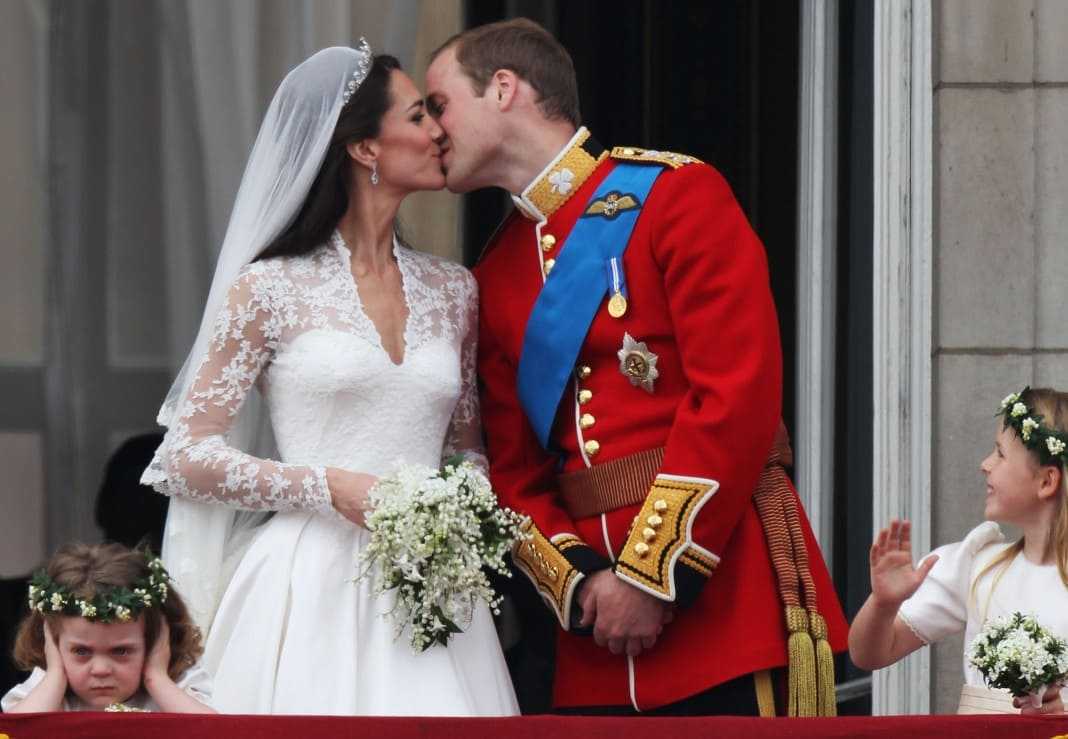 По правилам Англиканской церкви, молодым нельзя целоваться перед священником. Поэтому первый поцелуй молодоженов произошел по традиции на балконе королевского дворца. В левом нижнем углу — девочка, которой уже изрядно надоело это торжество. Это Грейс ван Катсем