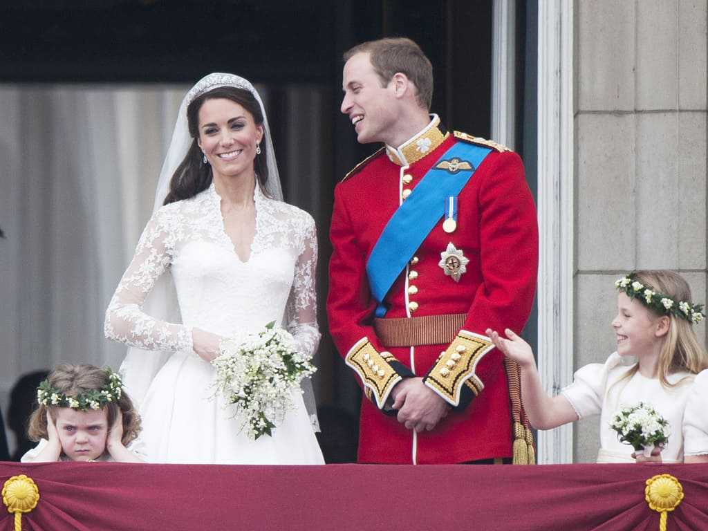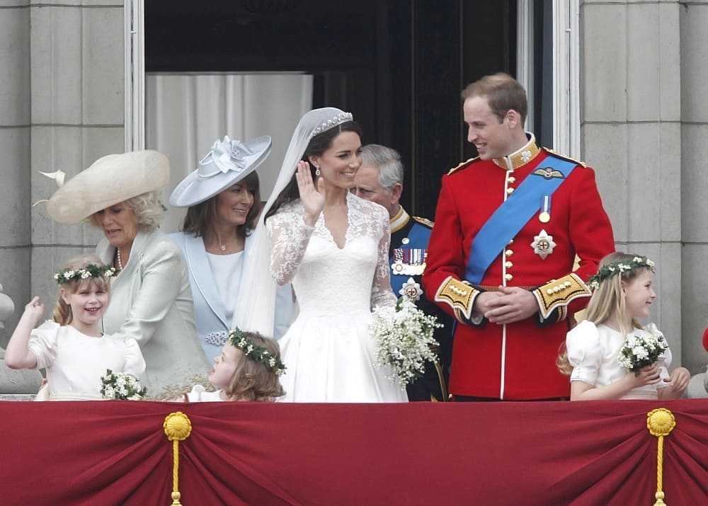Во дворце их ждал торжественный прием, устроенный королевой Елизаветой. Ровно в 13.25 герцог и герцогиня Кембриджские появились на балконе, с которого они наблюдали за пролетом бомбардировщиков и истребителей Королевских ВВС. На балконе пара дважды обменялась поцелуями, что привело всех в неописуемый восторг. Вечером в день свадьбы принц Уильям устроил вечер с танцами, на который было приглашено около 300 человек.