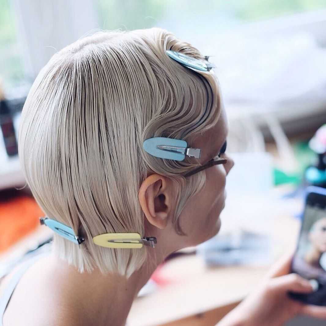 - Чем короче локоны, тем сложнее определиться с прической, поэтому для ультракоротких стрижек рекомендуется обычная повседневная укладка и использование одного или двух аксессуаров: например, цветка, венка или ободка.