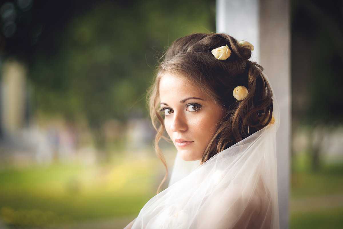 Волосы длиной до плеч помогут невесте выглядеть роскошно, особо не прилагая к этому никаких усилий. Сделать праздничную укладку невесте в этом случае несложно: достаточно создать лёгкую волну. А с помощью нескольких шпилек и лака можно создать строгую причёску.