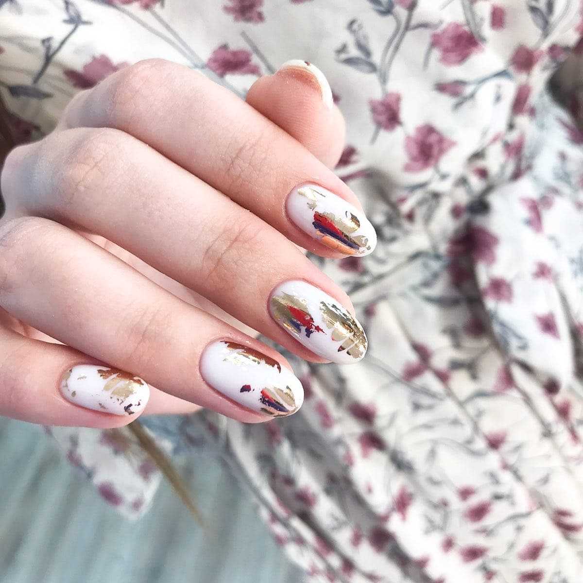 Если девушка в восторге от экспериментов с образами, ей понравится оформление ногтей в виде нейл-арт. Это новинка, при которой художественную роспись выполняют с помощью красок и кисточек. Изображение можно подобрать с учетом стилистики образа дамы.