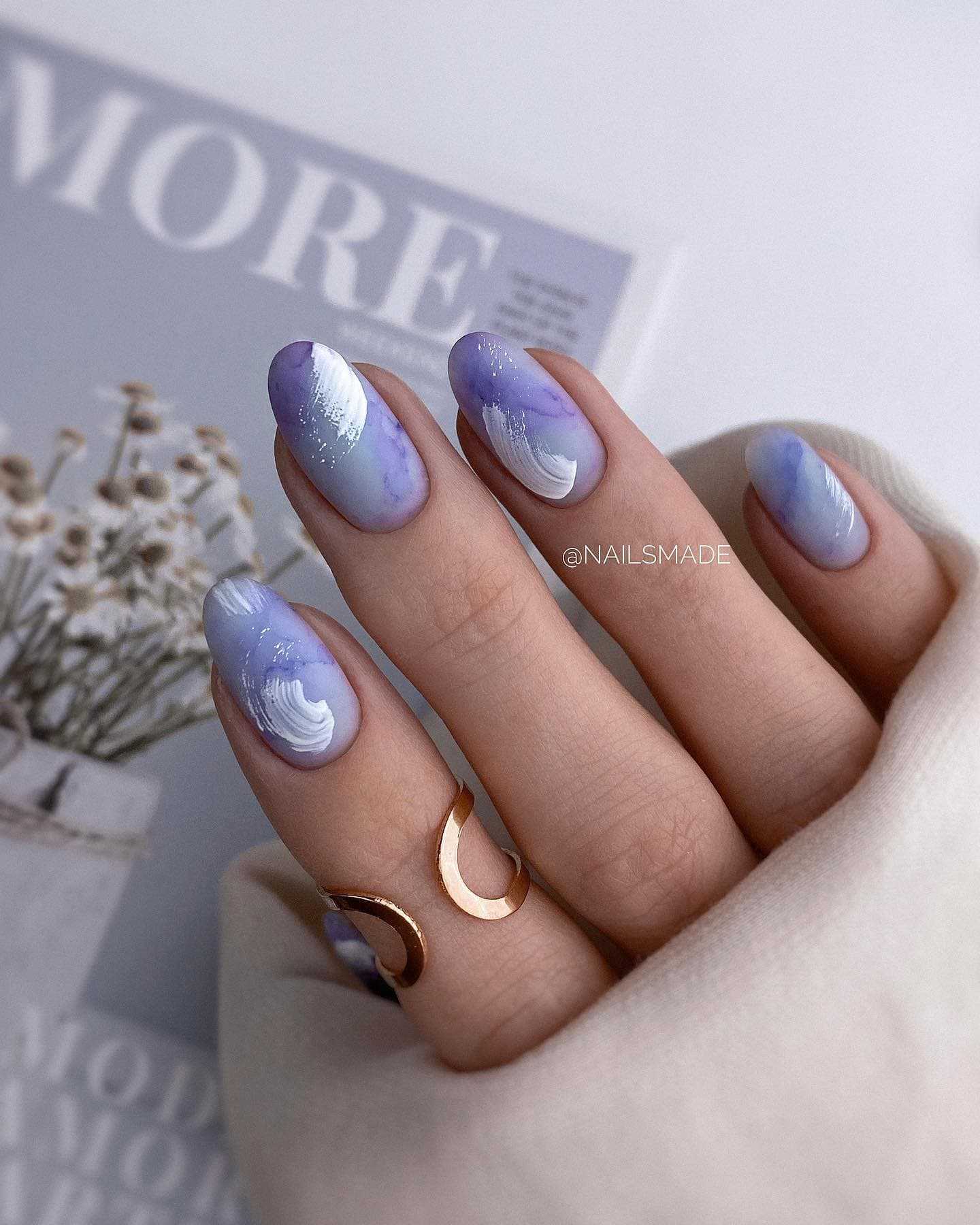 Маникюр — отличная идея для соответствия свадебному дресс-коду или тематике праздника. Если ты не успела раздобыть максимально подходящее платье в в морском стиле, тебя выручат волны на ногтях. Также стоит учитывать твою степень родства с главной героиней праздника: если ты непосредственная родственница или подружка невесты, даже такие мелочи как маникюр стоит лишний раз обсудить.