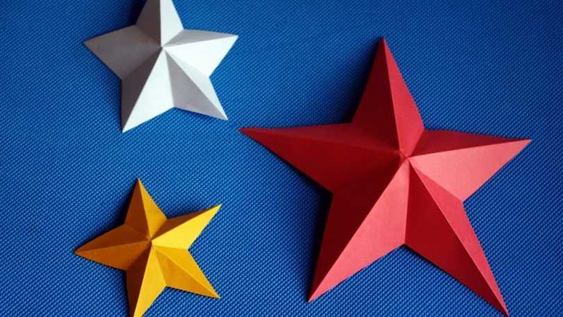 Объёмная звезда своими руками из бумаги или георгиевской ленточки станет прекрасным украшением для открытки к 23 февраля или 9 мая. А «Вифлеемская звезда» в технике оригами по схемам и шаблонам может служить яркой и интересной ёлочной игрушкой.