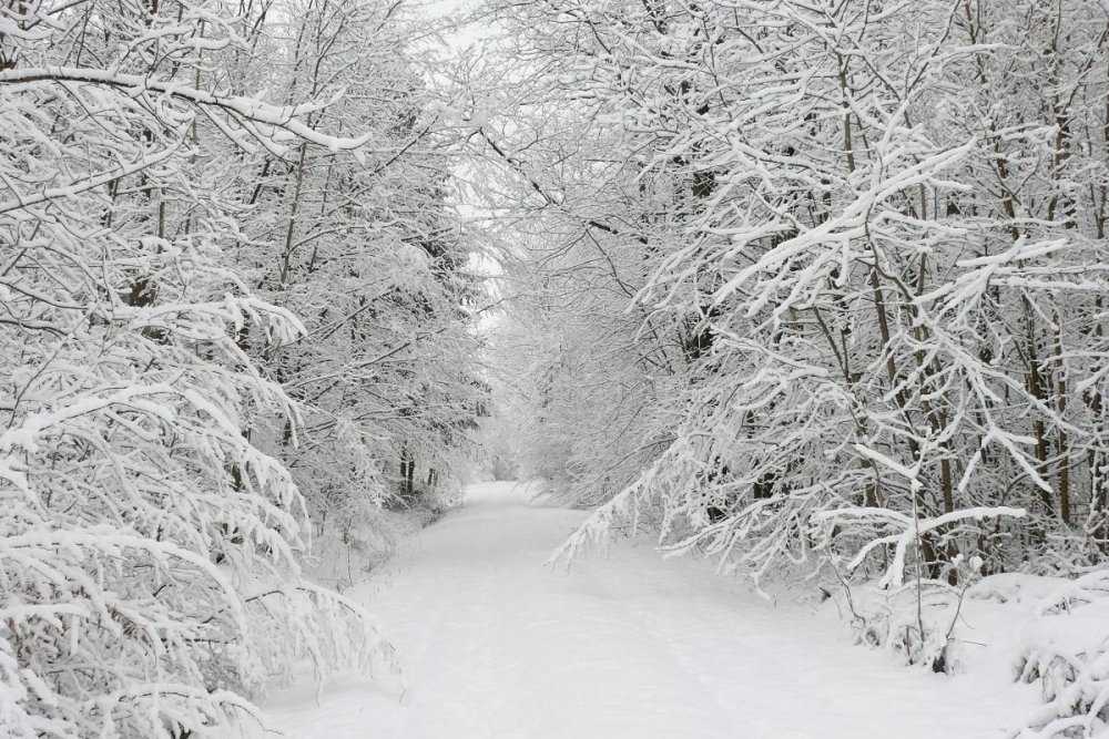 Тотально занесённая снегом дорога, над которой нависли деревья в снегу. Очень красиво! Хотели бы потрясти ветки деревьев и попасть под снег?