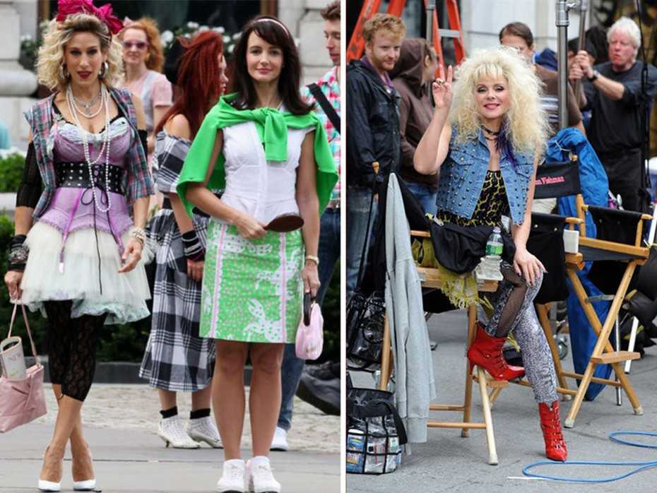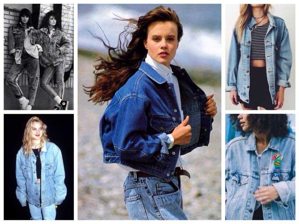 Не сдавала позиций и джинсовая ткань, из которой шили не только штаны, но и юбки, куртки и платья. Ветровки в спортивном стиле, леггинсы из синтетической ткани и кроссовки стали неотъемлемой частью образа девушки тех лет. При этом обязательным атрибутом были броские аксессуары, на которых присутствовало множество самых замысловатых узоров.