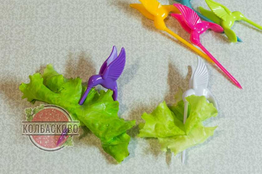 - Все поочередно насаживаем на разноцветные пластиковые шпажки.