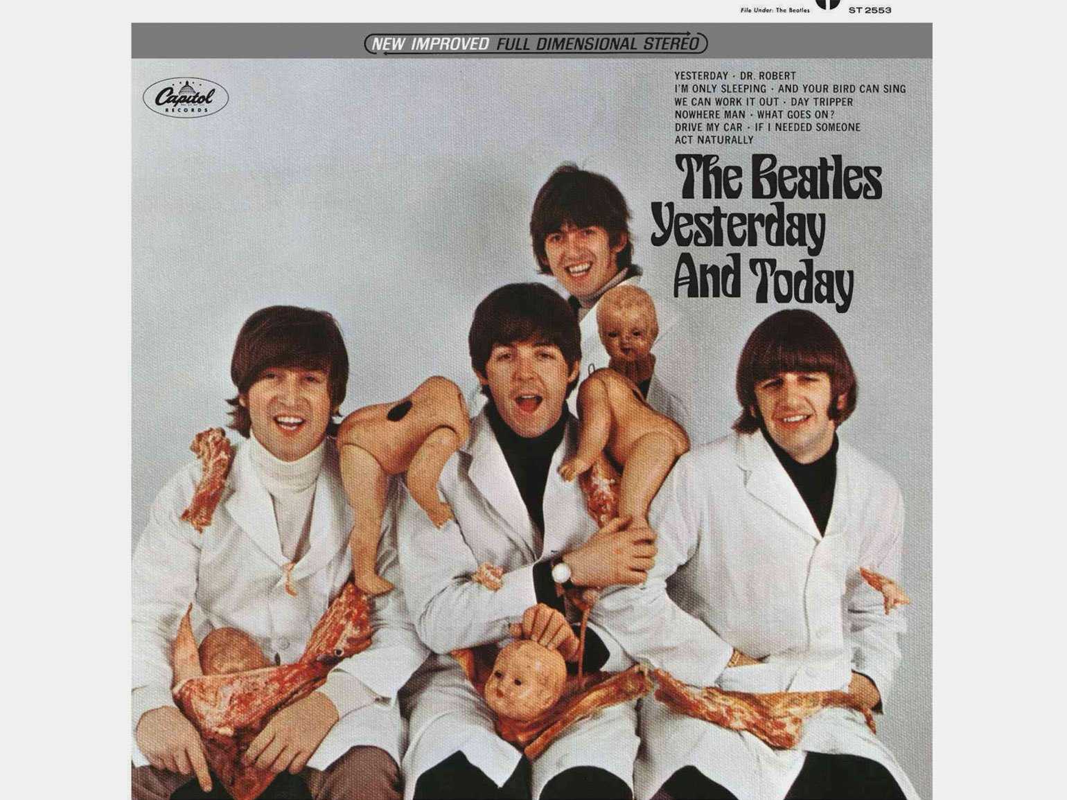 Одну из самых скандальных обложек пластинок The Beatles можно отнести к произведениям концептуального искусства. Альбом Yesterday and Today был выпущен в 1966 году в США, и фотографию для его обложки сделал Роберт Уитакер — штатный фотограф The Beatles в шестидесятые годы. Он снимал концерты группы в Нью-Йорке на стадионе Ши и последние международные гастроли музыкантов. Уитакер сотрудничал с журналом Vogue и Time, документировал Вьетнамскую войну и вооружённый конфликт в Камбодже.