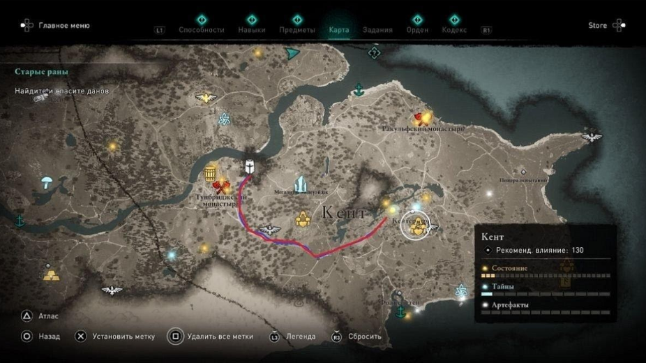 Затем отправляйтесь к руинам древнего поселения. Чтобы туда попасть, воспользуйтесь лодкой.