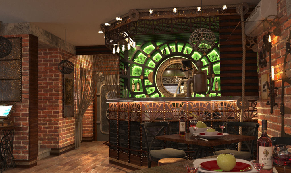Классический пример оформления интерьеров в стиле стимпанк – это декорации фильма Стивена Норрингтона «Лига выдающихся джентльменов». Полностью подобный декор в частных домах используется редко, т.к. довольно тяжеловат для восприятия, если только хозяин дома не полный романтик, мечтающий об альтернативной реальности. Гораздо чаще он применяется при оформлении общественных помещений для развлечения и отдыха – кафе, баров, клубов, гостиниц. Однако в элементах, акцентах и аксессуарах ему нет равных для придания интерьеру оригинальности и неповторимости.