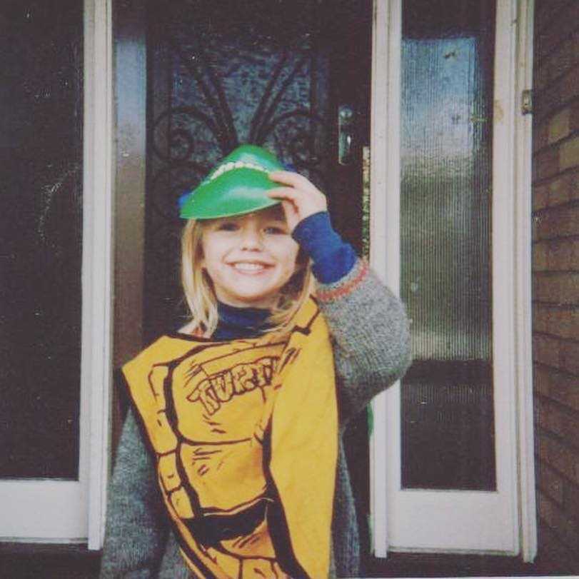 На верхней части спины несколько татуировок: сердце, лицо, надпись. На правой руке есть тату в виде бриллианта, черепашки ниндзя. Выше груди расположены татуировки: сердечко, надпись. Слева на шее тоже надпись на английском. У актрисы есть татуировки даже на пальцах рук. |