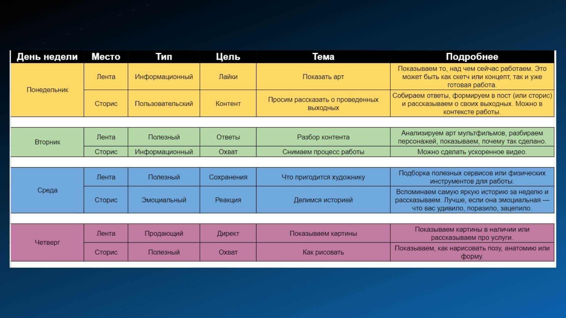 Контент-план поможет определить темы блога и виды постов для публикации.
