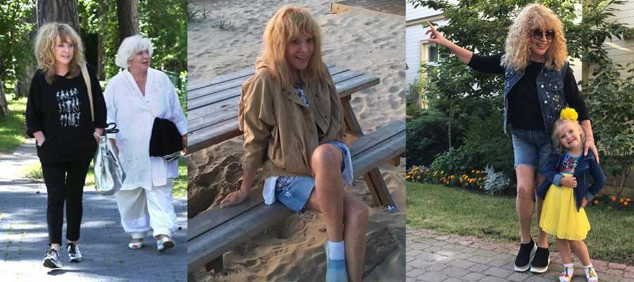 Да, с течением времени, нет уже той стройности, которая была много лет назад, тем не менее, это не мешает выглядеть эффектно: яркие кардиганы, использование многослойности, знание своего преимущества в фигуре – тонкая талия от природы, на которой всегда есть акцент.