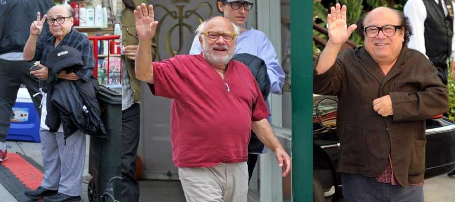 Великолепный Денни Де Вито визуально может считаться брендом. И да, он выглядит на сцене и в кадре примерно так же, как и в жизни: растрепанные волосы, большие башмаки, объемный верх в виде свитера, футболки или же пиджака с рубашкой.