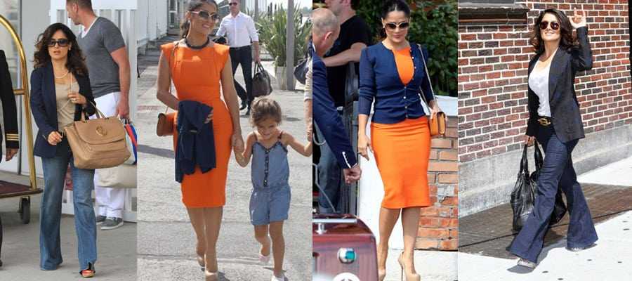 Цветовая гамма может быть очень яркой за счет природной яркости. Практически все актрисы вне сцены и кадра носят достаточно большие сумки. И Сальма тоже не исключение, несмотря на свой небольшой рост.