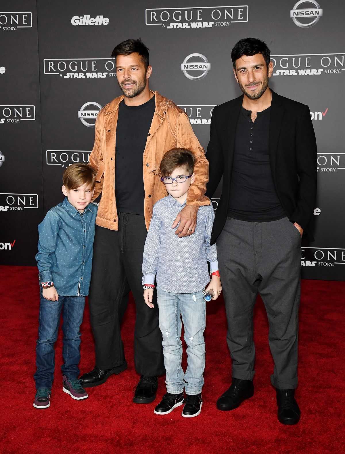Рики Мартин, Джван Йосеф с сыновьями Маттео и Валентино на премьеру фильма «Изгой-один: Звёздные войны. Истории» в Голливуде, 10 декабря 2016 г.