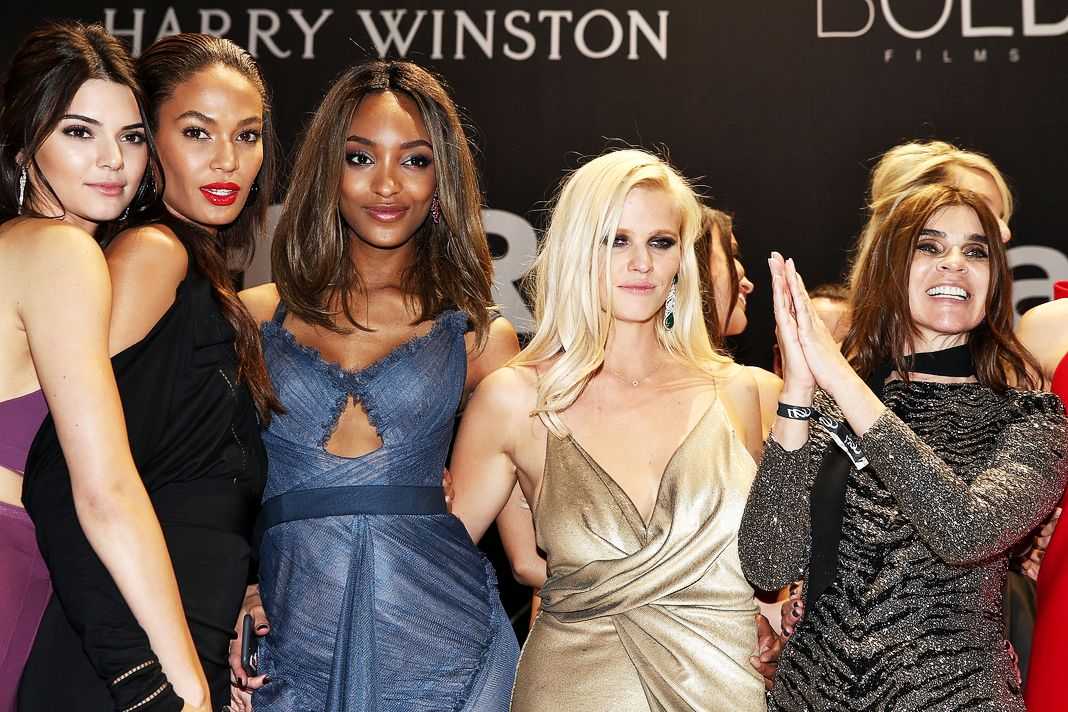 Модели Кендалл Дженнер, Джордан Данн, Джоан Смоллс, Лара Стоун и Карин Ройтфельд на сцене 22-го гала-концерта amfAR «Кино против СПИДа» в Кап д’Антиб, 21 мая 2015 г.