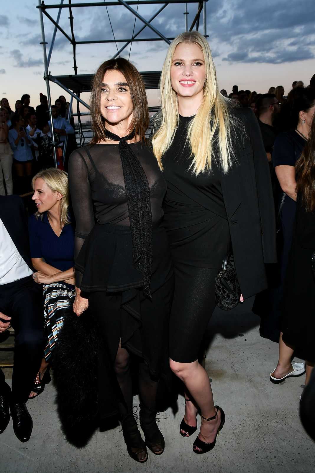 Бывший главный редактор Vogue Paris Карин Ройтфельд и модель Лара Стоун на шоу Givenchy во время Недели моды в Нью-Йорке, 11 сентября 2015 г.