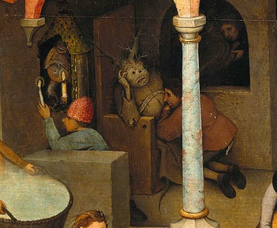 На картине попадается и несколько монстров в духе Босха. Но лишь, чтобы проиллюстрировать пословицы.