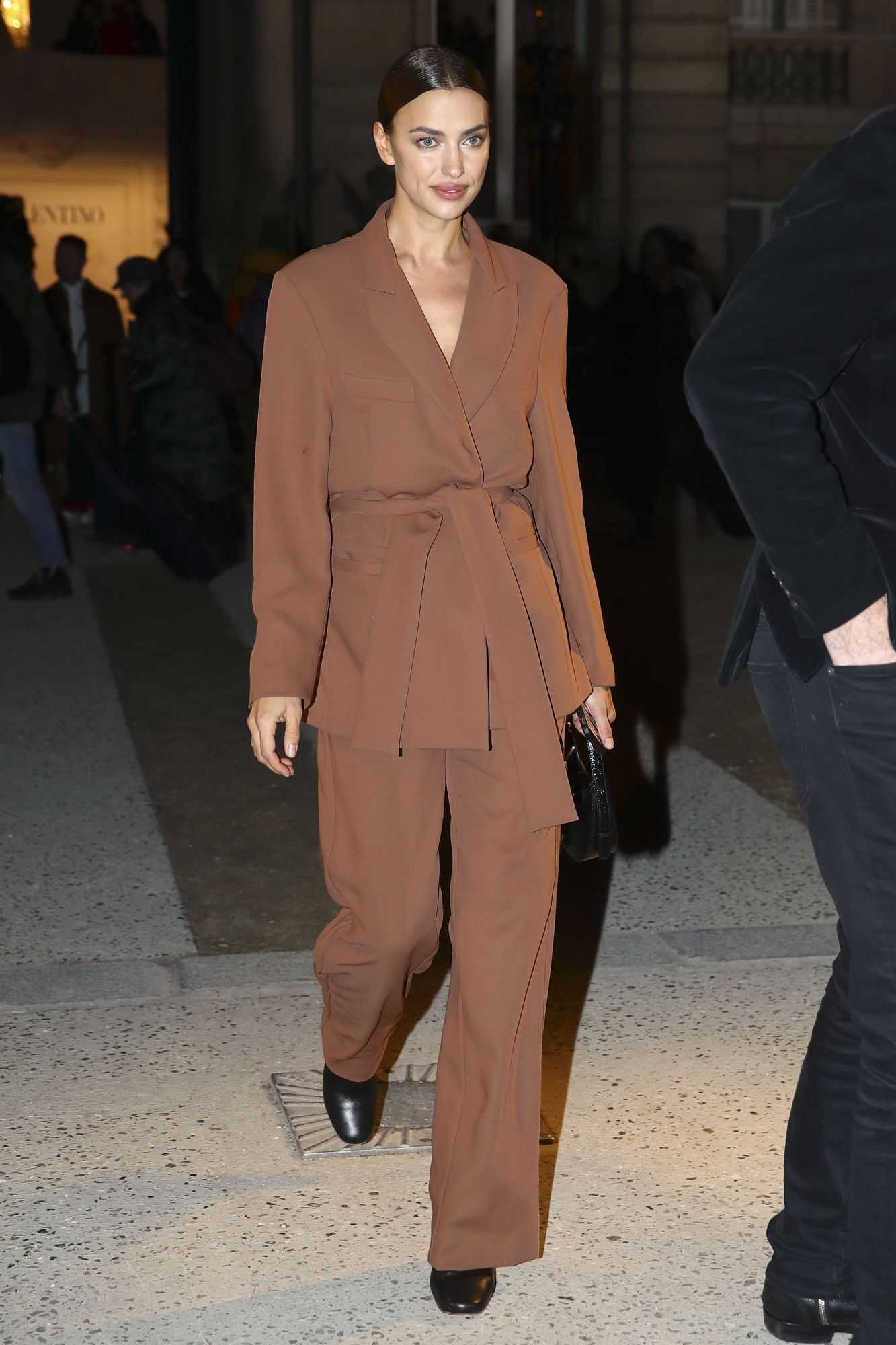 Еще одно преимущество нейтральных оттенков заключается в том, что они идеально сочетаются между собой, а значит, сводят к минимуму риск модного провала. Лучшей иллюстрацией этого приема в 2020 году стал образ Ирины Шейк для Недели моды в Париже: в перерывах между показами на одной из улиц города модель появилась в стильном брючном костюме-палаццо, который состоял из широких коричневых брюк и жакета с запахом. Образ дополнили черные ботильоны и сумку в форме полумесяца.