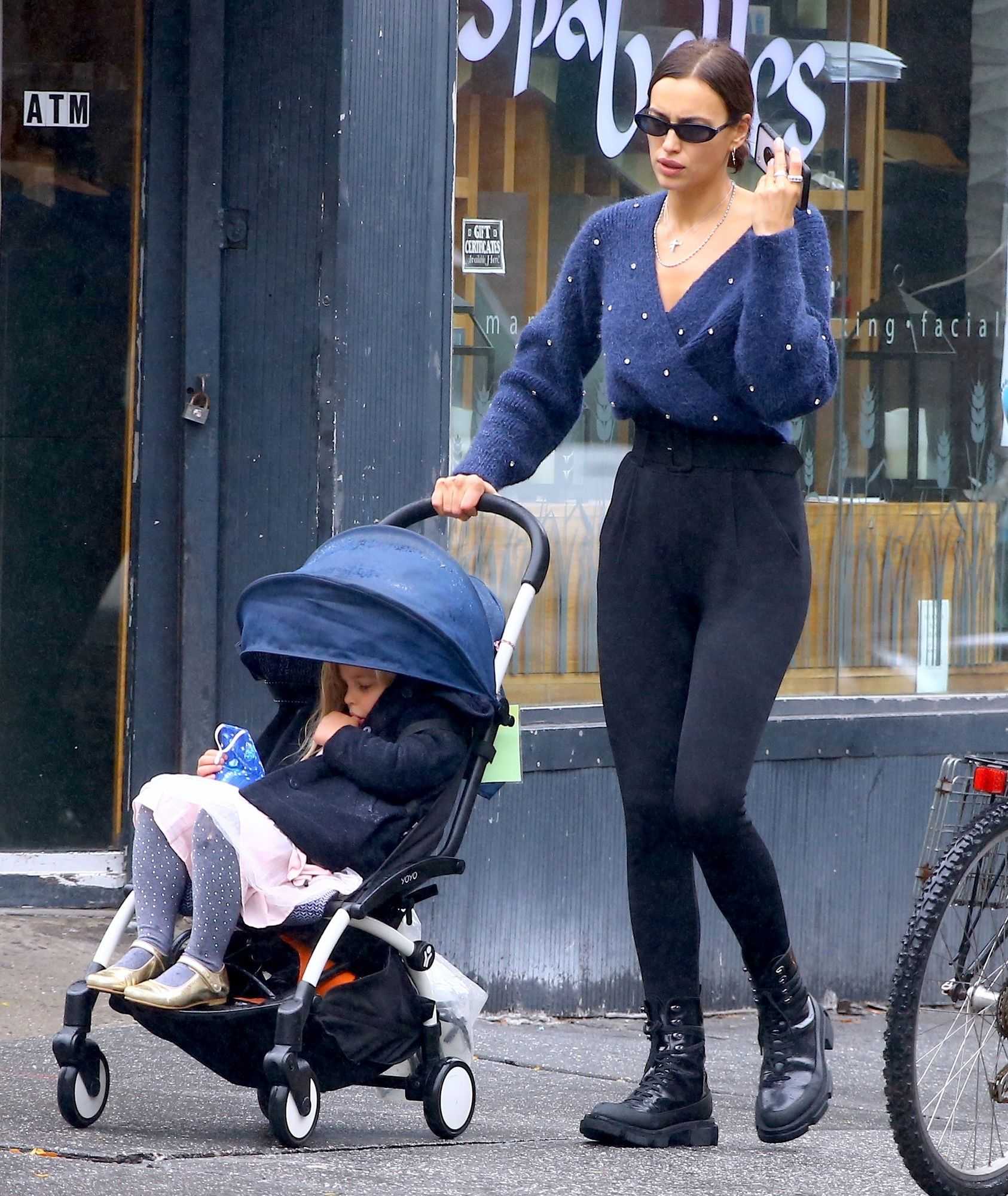 Уличный стиль знаменитости: Ирина Шейк в брючном костюме на прогулке в Нью-Йорке