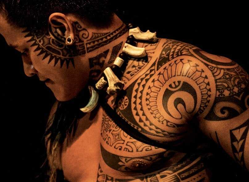 Еще одно любопытный исторический факт, чем почетнее был мужчина, тем больше татуировок было на его теле. При выборе места для наколки мужчины останавливались на лице (в частности вожди), а также на ногах от колена и до пояса. На ягодицах были тату в виде спирали: открытая – символ восстановления, закрытая – совершенство и бесконечность. Узоры на запястьях и груди показывали социальный статус, орнамент на щеках – род деятельности, на подбородке – происхождение, а на лбу – историю сражений и побед. Что касается представительниц слабого пола, то на их теле рисунков было гораздо меньше, размещали их на подбородке или губах.