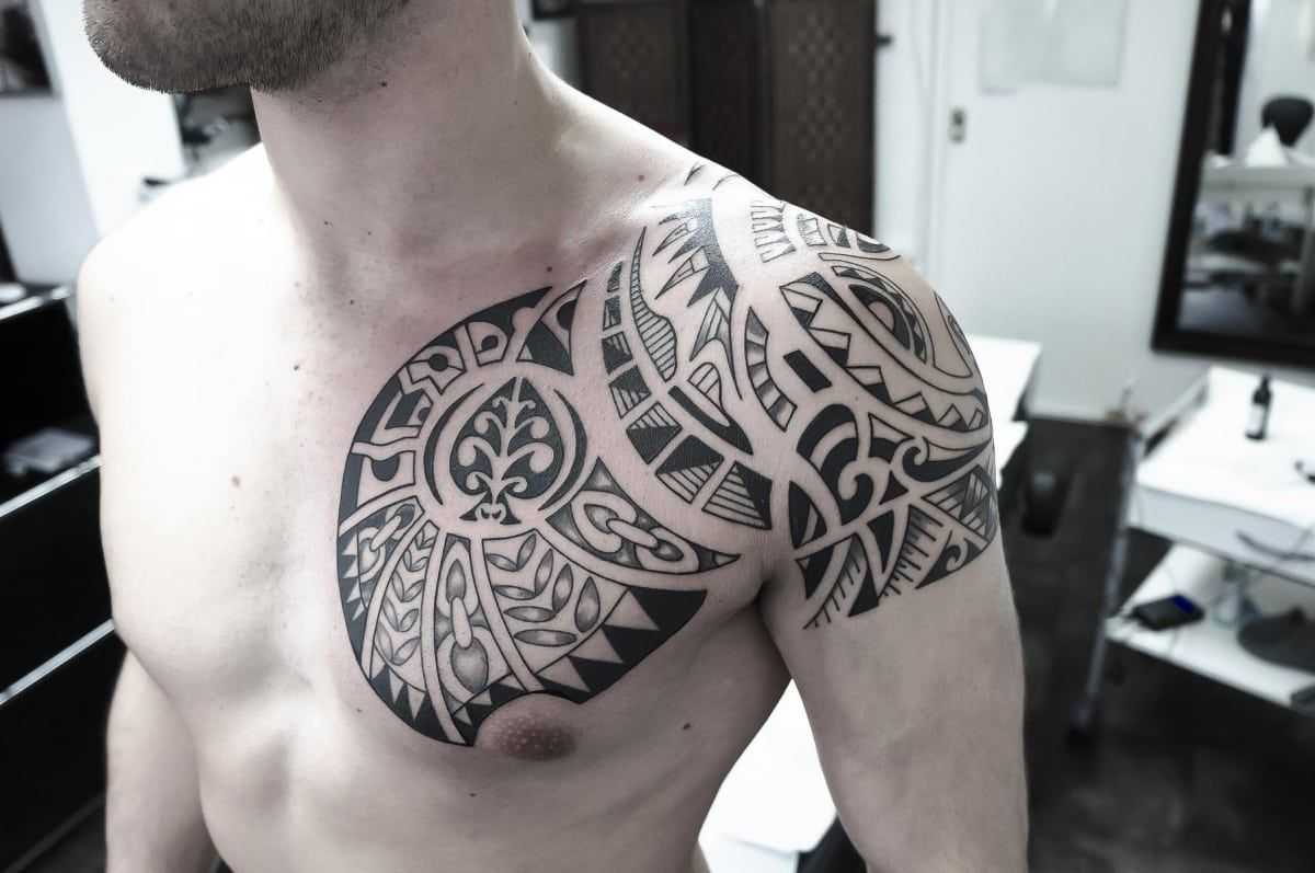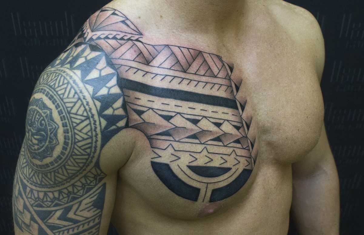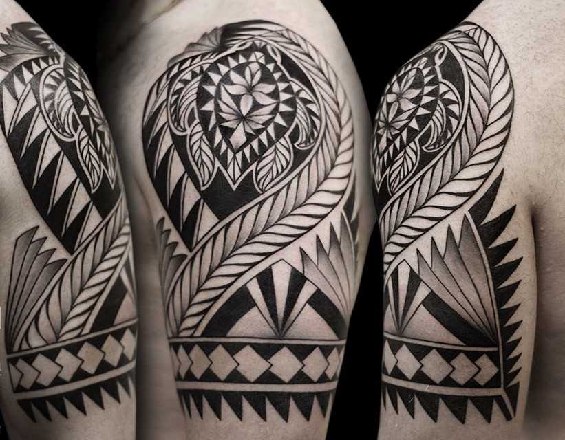 Тату в стиле «Полинезия» же в основном – плоские геометрические рисунки с изображением морских животных – это связано с географическим расположением полинезийского народа.