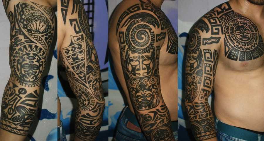 Часто тату в стиле «майя» путают с татуировками в полинезийском стиле: да, они действительно похожи внешне, но есть некоторые различия, которые позволят их безошибочно различать.