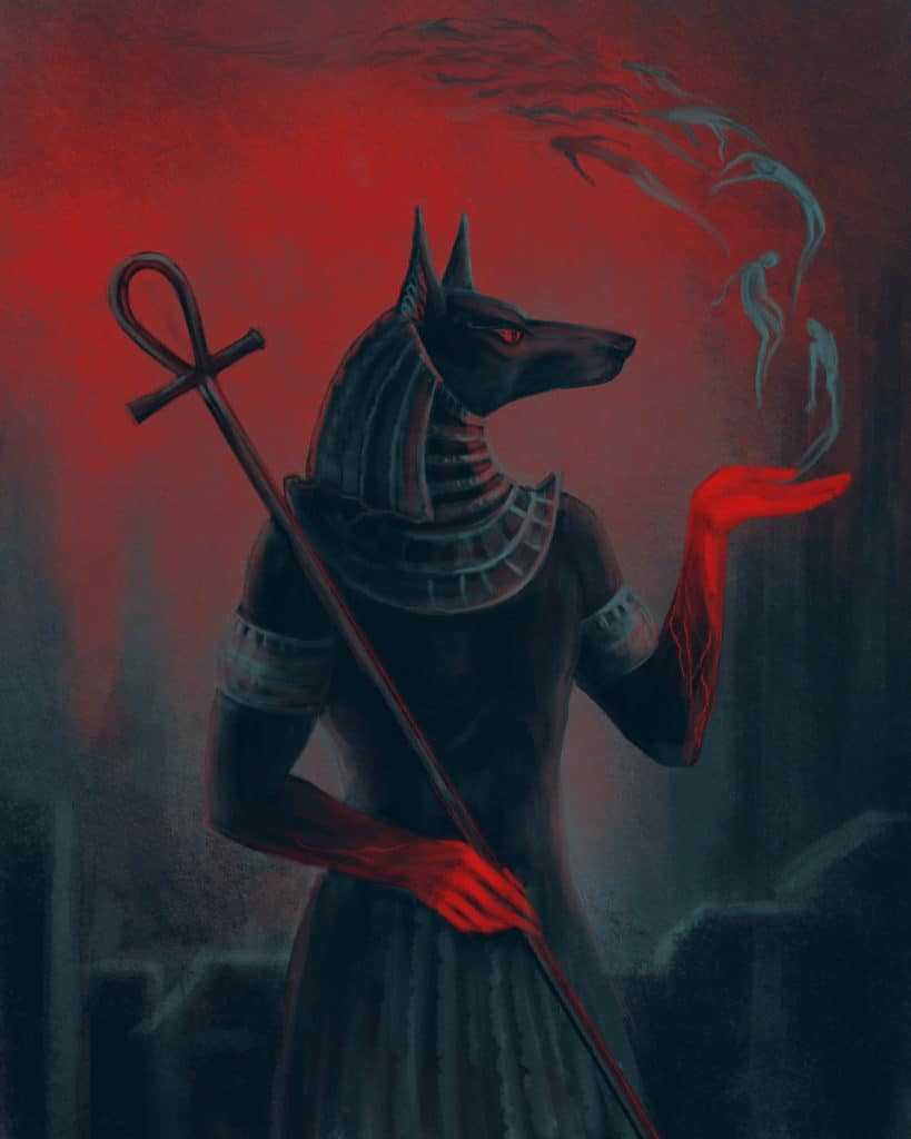 Что касается внешнего вида, то Анубис всегда изображался как существо, обладающее телом человека и черной головой шакала. Изначально у историков возникал вопрос, почему голова черная, ибо в действительности же головы шакалов коричневые или серовато-рыжие. Однако это списали на то, что черный цвет – это символ смерти, и голова шакала именно поэтому была черной.