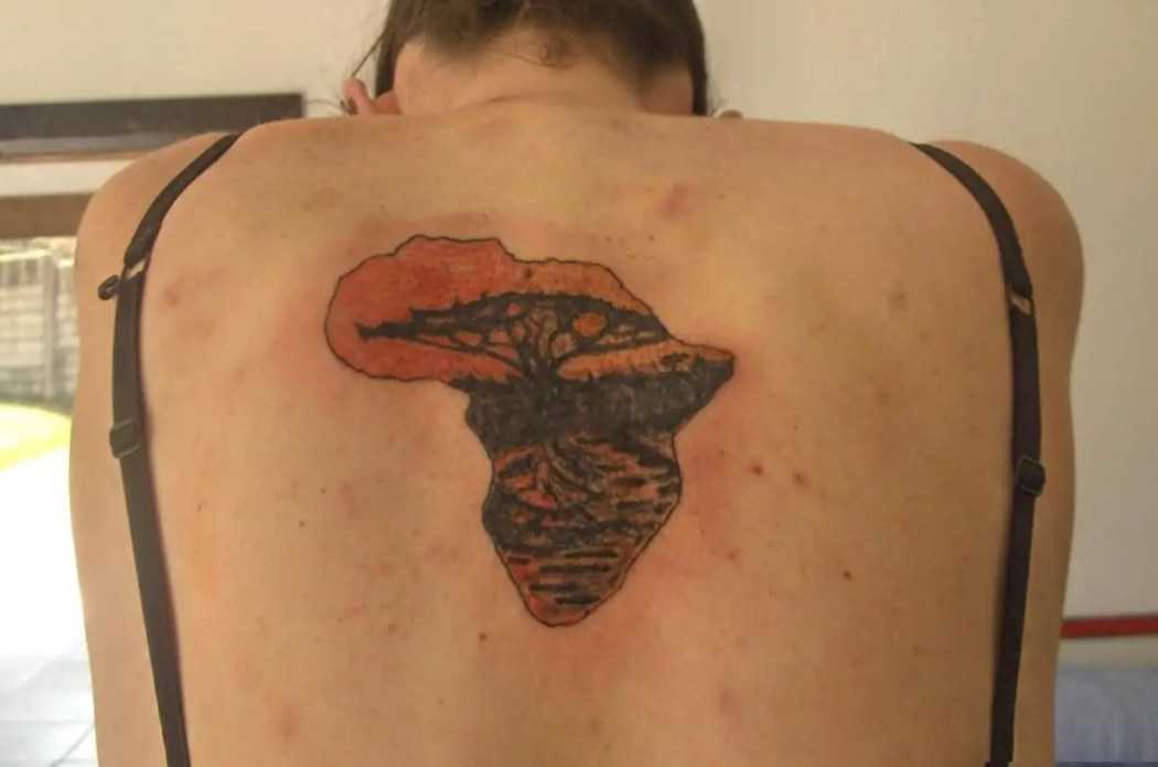 21. Lovely Black Color Ink African Map Tattoo On Boy Back