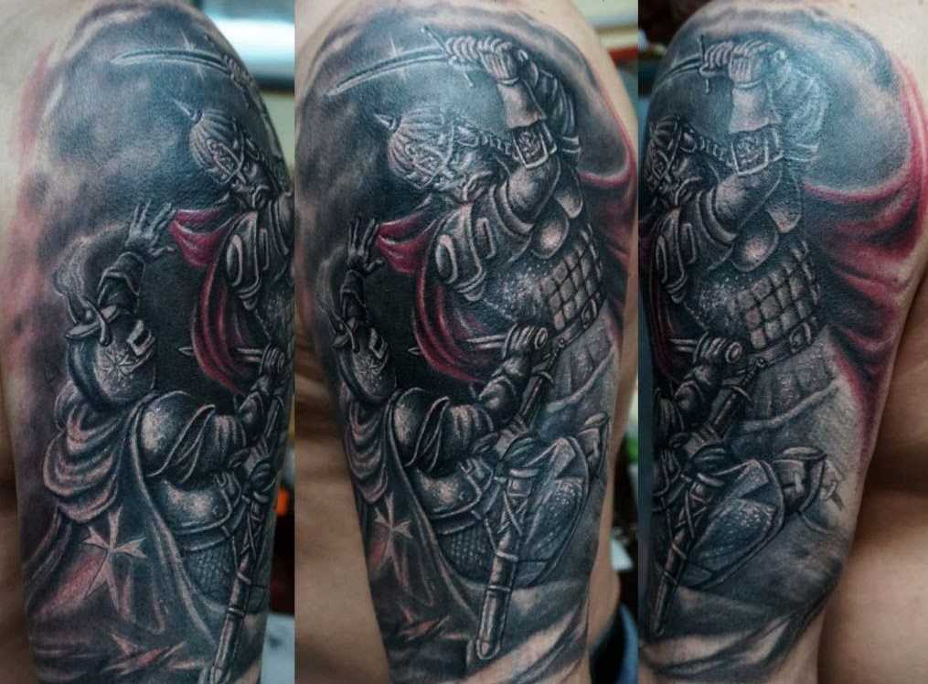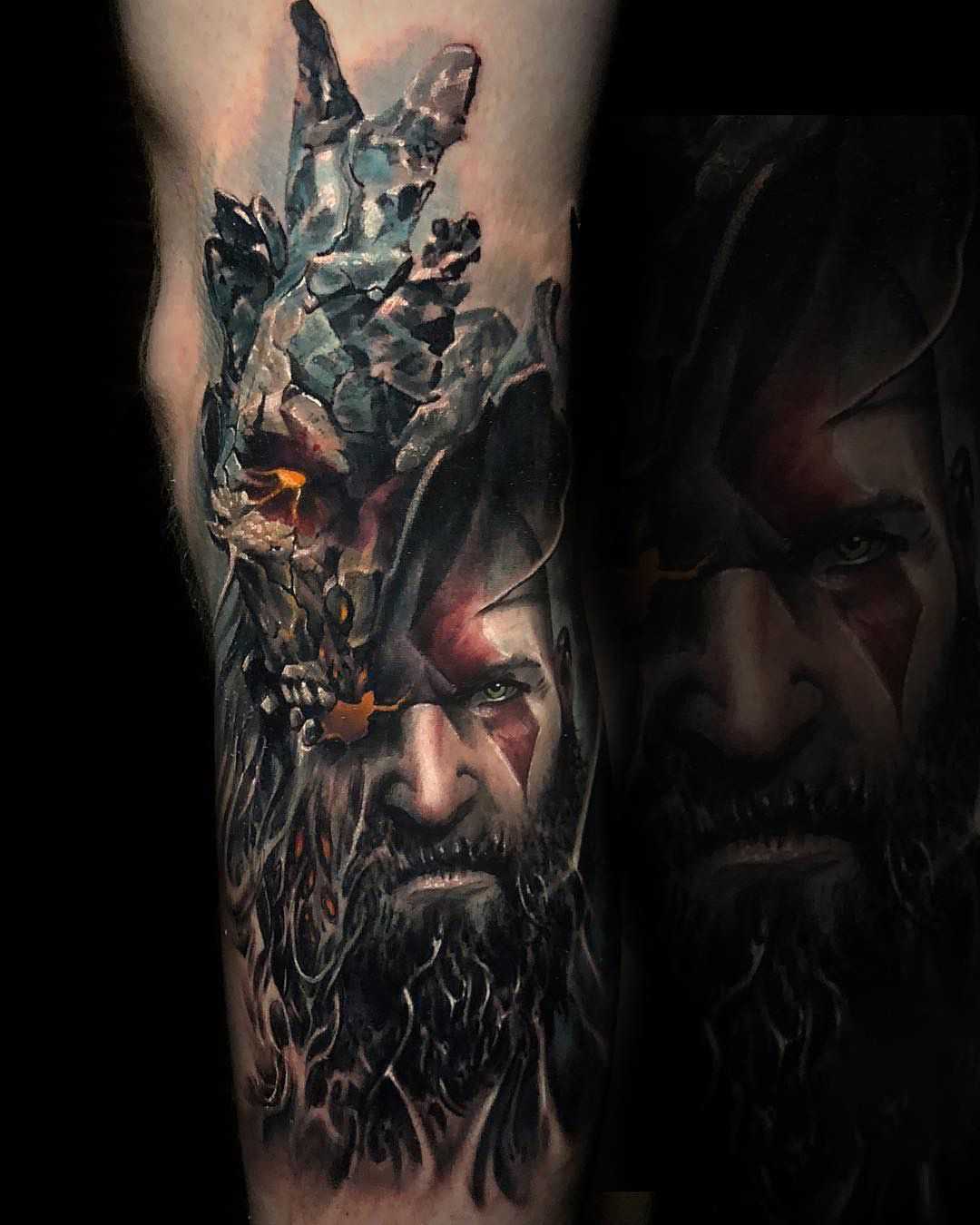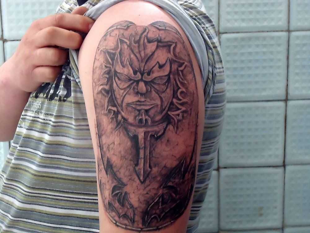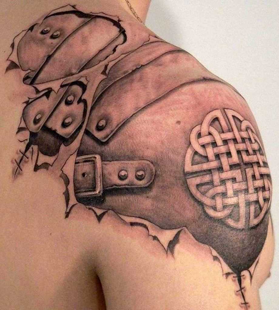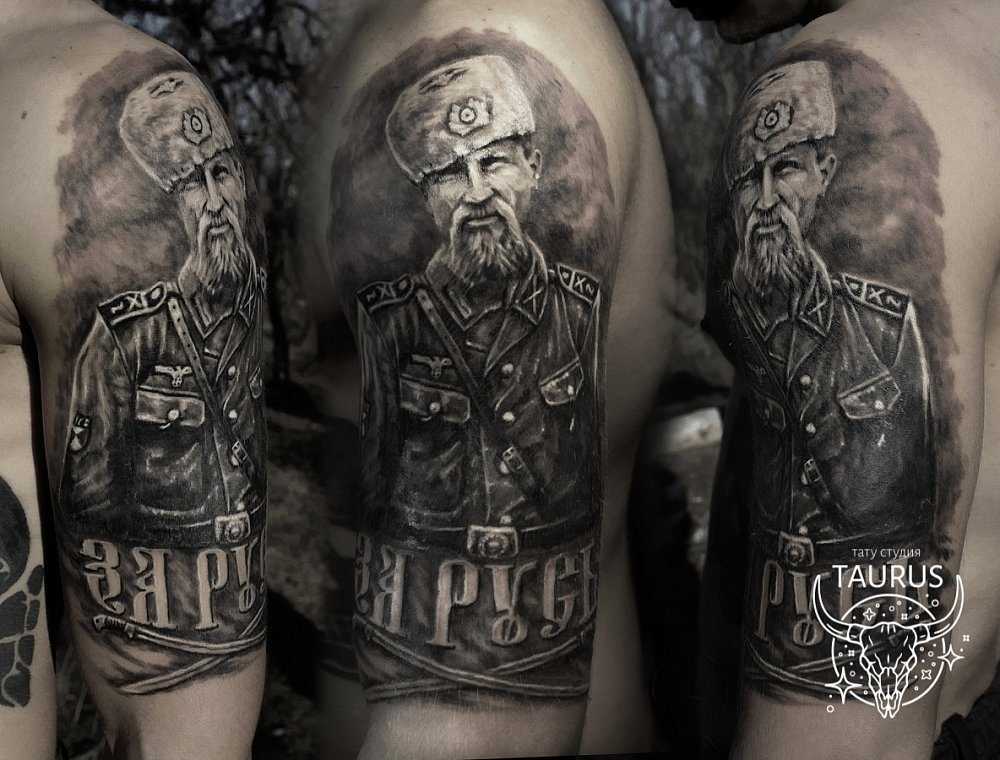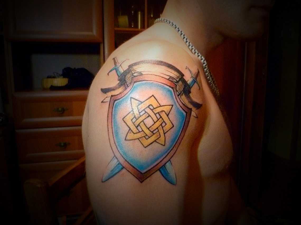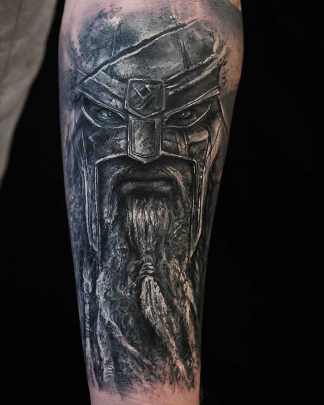 Тату с изображением божества – у славян в древности был большой пантеон богов, напоминающий мотивы скандинавской религии и мифологии. Культура славян и викингов постоянно переплеталась, отсюда появились следующие языческие наколки: