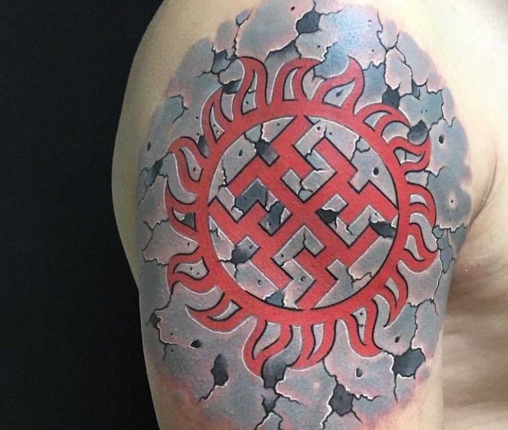 Со временем люди стали забывать славянские древние тату и их значимость. Лишь некоторые набивали миниатюрные наколки в недоступных взору зонах тела. Одним из примеров может быть геометрический знак – коловрат, который является предком свастики.