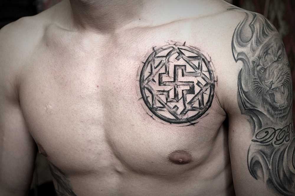 Свастика – эмблема нацистских и фашистских организаций. Кроме того, свастическая символика – знак борьбы арийцев за свою чистую кровь. Также свастика является основой еще одного направления – арийские тату, которые на сегодня популярны.