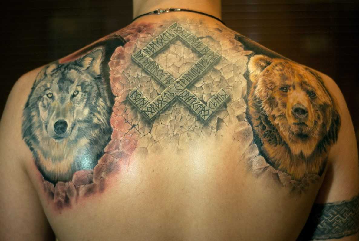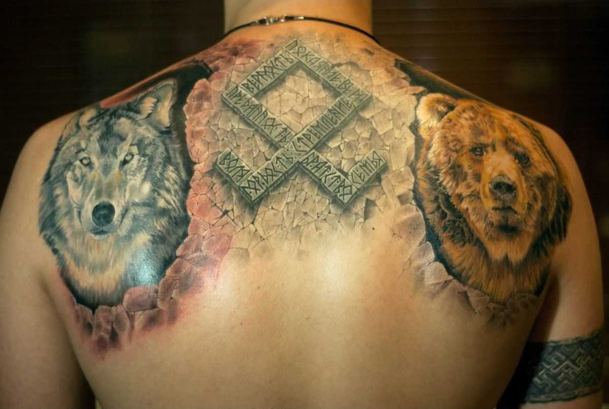 Довольно часто в качестве главного акцента татуировки были животные или птицы. Все они имеют совершенно разные значения, о которых стоит знать до процесса нанесения. К примеру, медведь является хозяином леса и воплощением бога Велеса. Поэтому символ в виде татуировки всегда означает власть, силу, а также здоровье и плодородие.