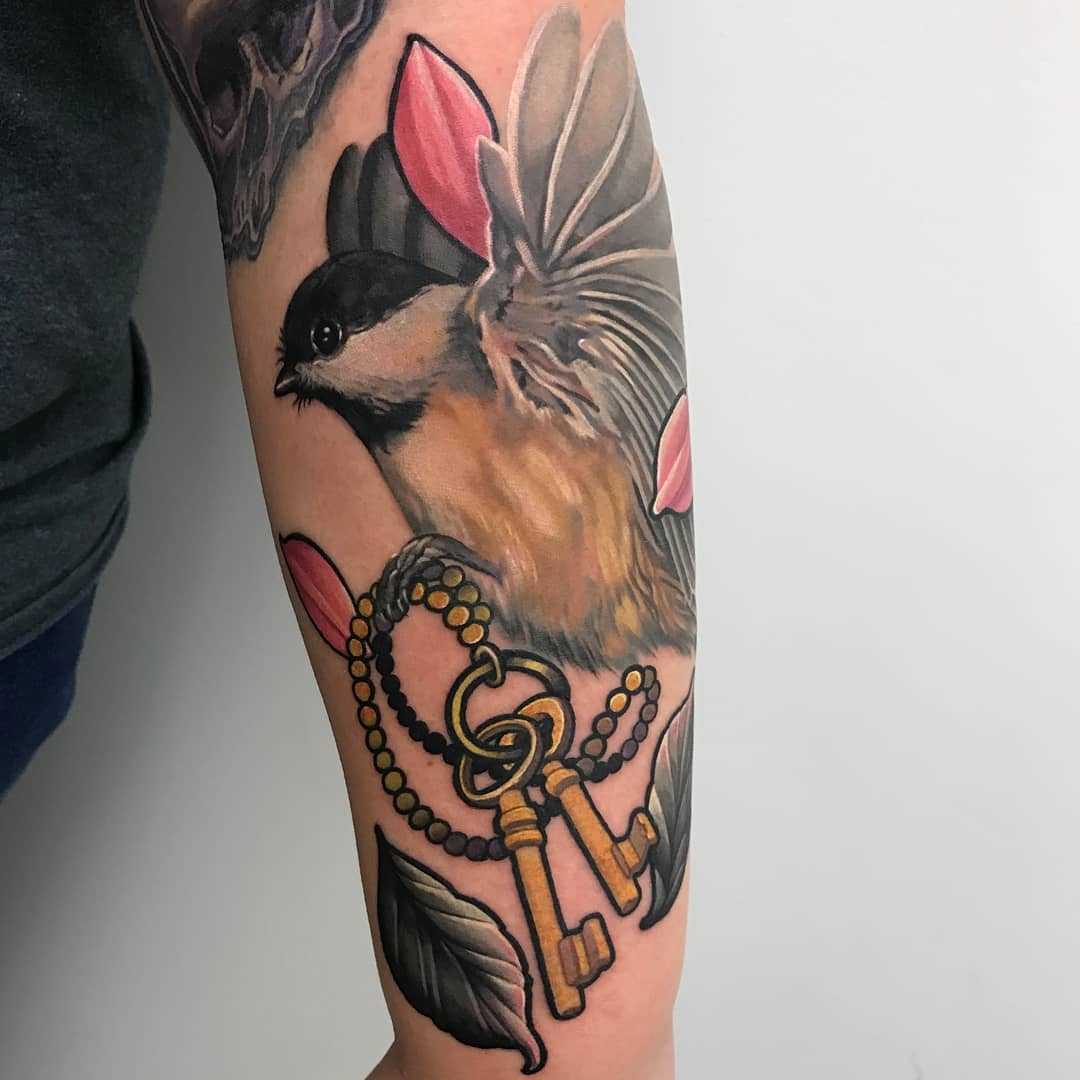 Существуют, однако, татуировки, выразительность которых во многом достигается за счет использования богатой палитры цветов. Так, например, изображения растений, животных и карикатурных героев в стиле “old school” и “new school”, отличаются своей яркостью и декоративностью, использование нескольких цветов в таких видах тату просто обязательно.
