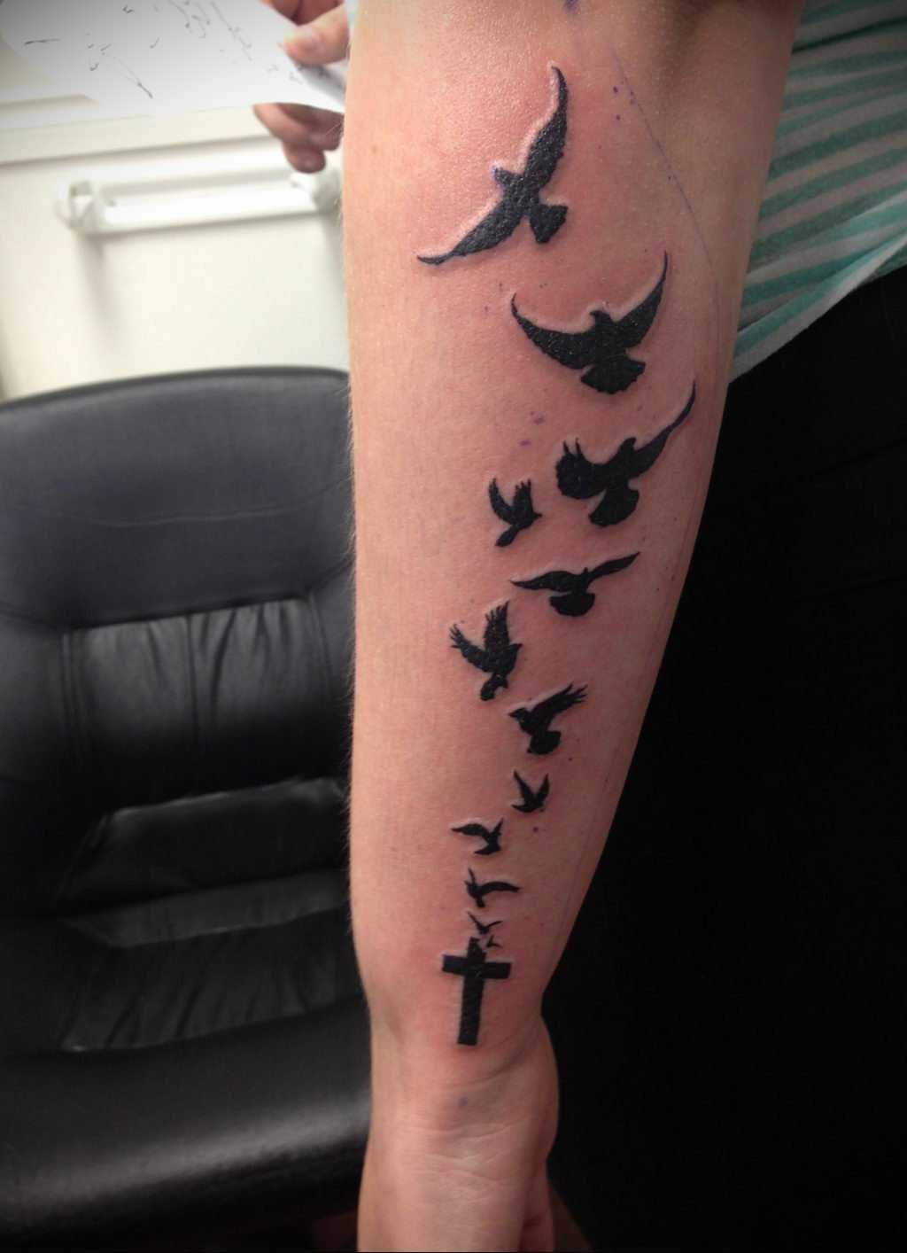 Предплечье – второе по популярности место для тату со смыслом у мужчин. Здесь хорошо смотрятся как цветные, так и черно-белые рисунки. Чаще всего это эскизы больших размеров.