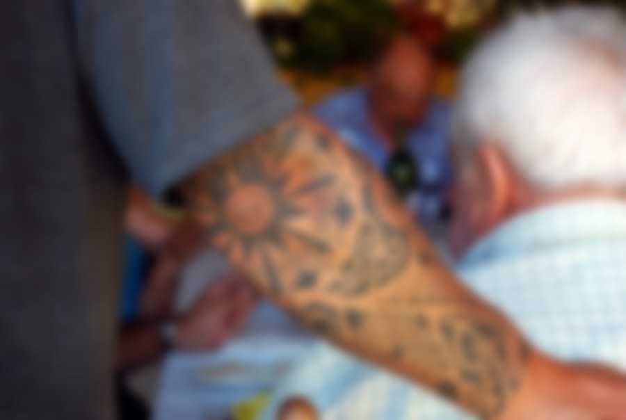 На третьем месте бицепс. Абсолютно скрытое место. Чтобы продемонстрировать тату, мужчине придётся «напрячь мускулы» и отвести руку в сторону.