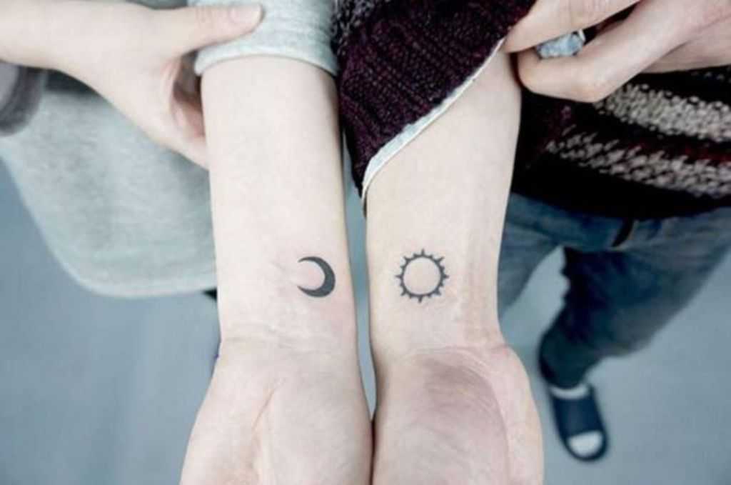 Маленькие мужские тату часто используются в парных рисунках. В такой композиции, половина татуировки на запястье остается у парня, а вторая – у девушки. Либо же, могут наноситься одинаковые изображения татуировок на запястье у обоих людей. В этом случае, мини тату говорит о романтической натуре парня и его оптимизме.