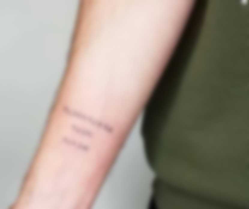 Это опасная татуировка. Обычно с помощью надписей выражают свои чувства или эмоции