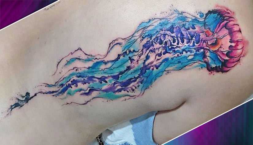 В морях и океанах можно встретить гигантских медуз, габариты которых впечатляют даже опытных моряков. Длина щупалец таких монстров может достигать 5 – 10 метров, и они представляют угрозу даже для человека. Такие создания, в отличие от какого-нибудь Ктулху, вполне реальны. Они часто становятся причиной серьёзных травм и даже гибели, вызывая паралич. Хотите татуировку с настоящим монстром глубин? Вот вам вариант.