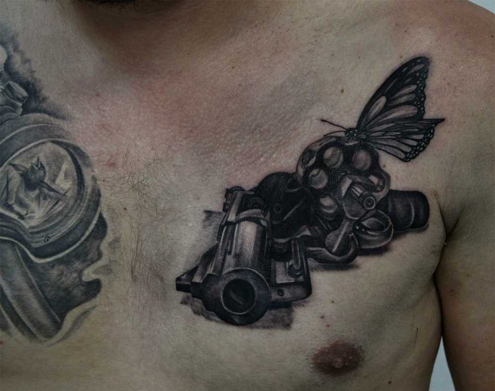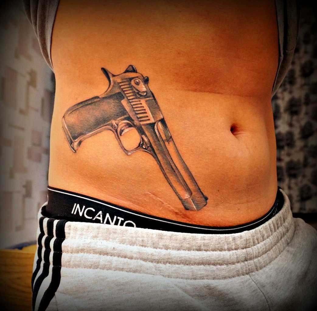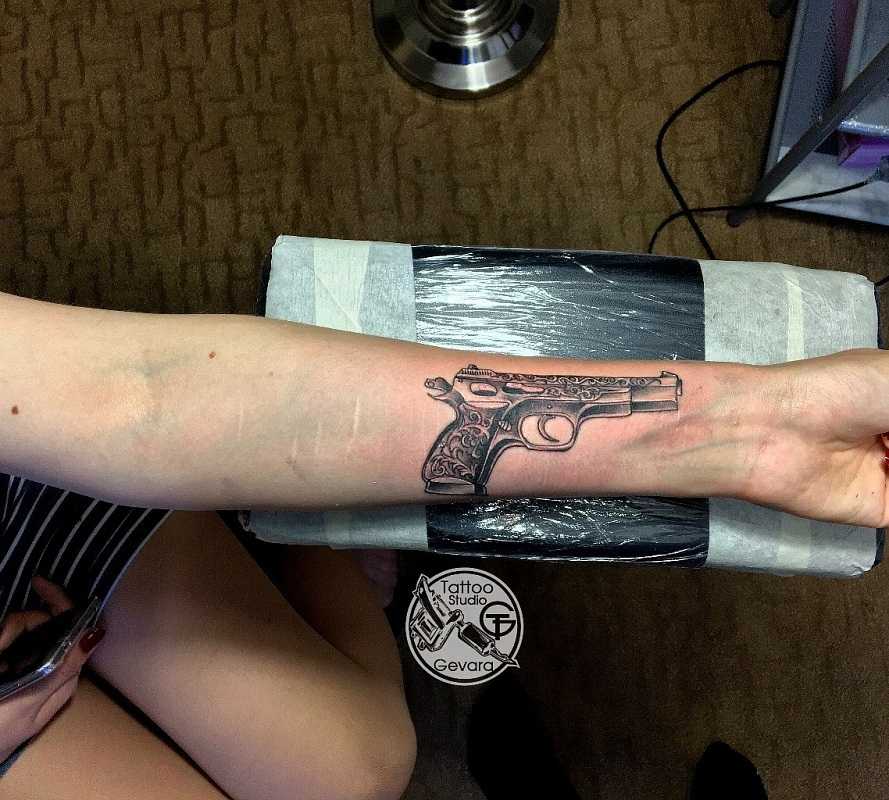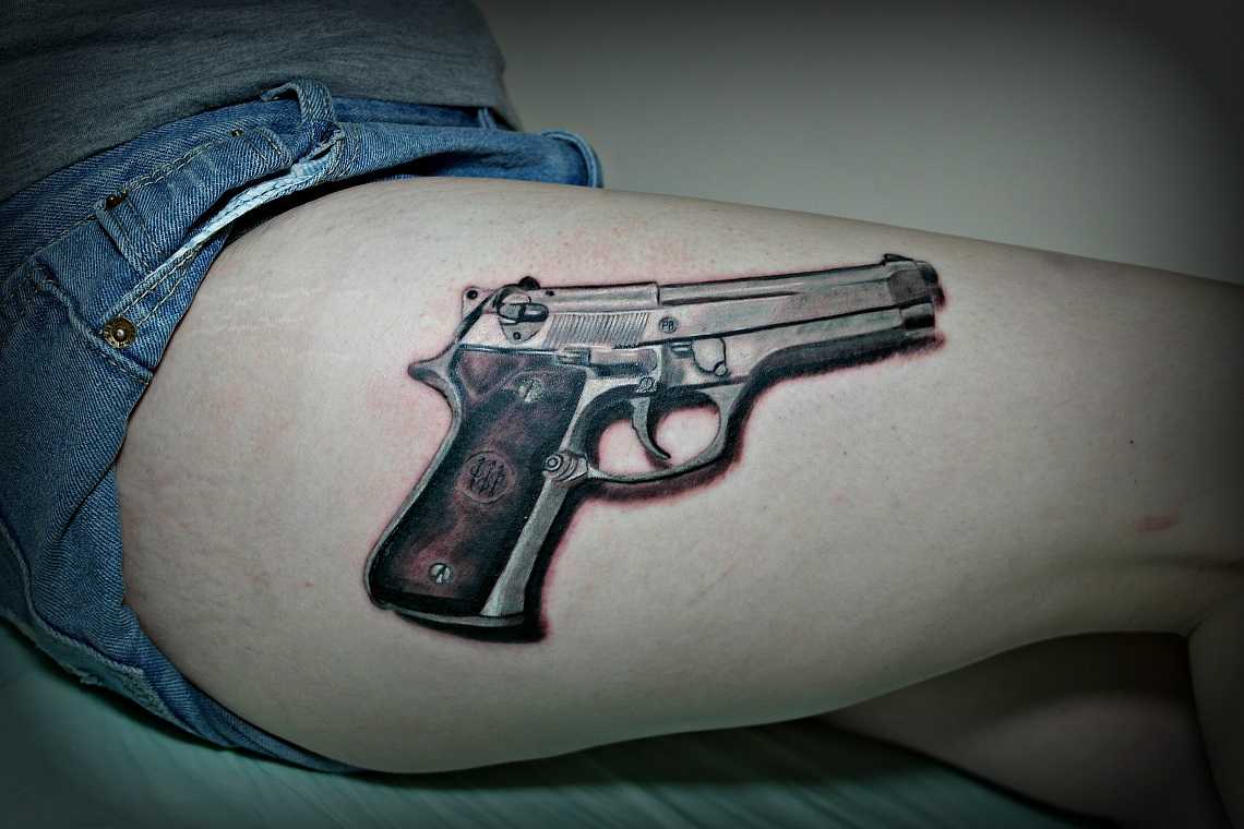 Тату пистолет: значение у девушек, мужчин и на зоне