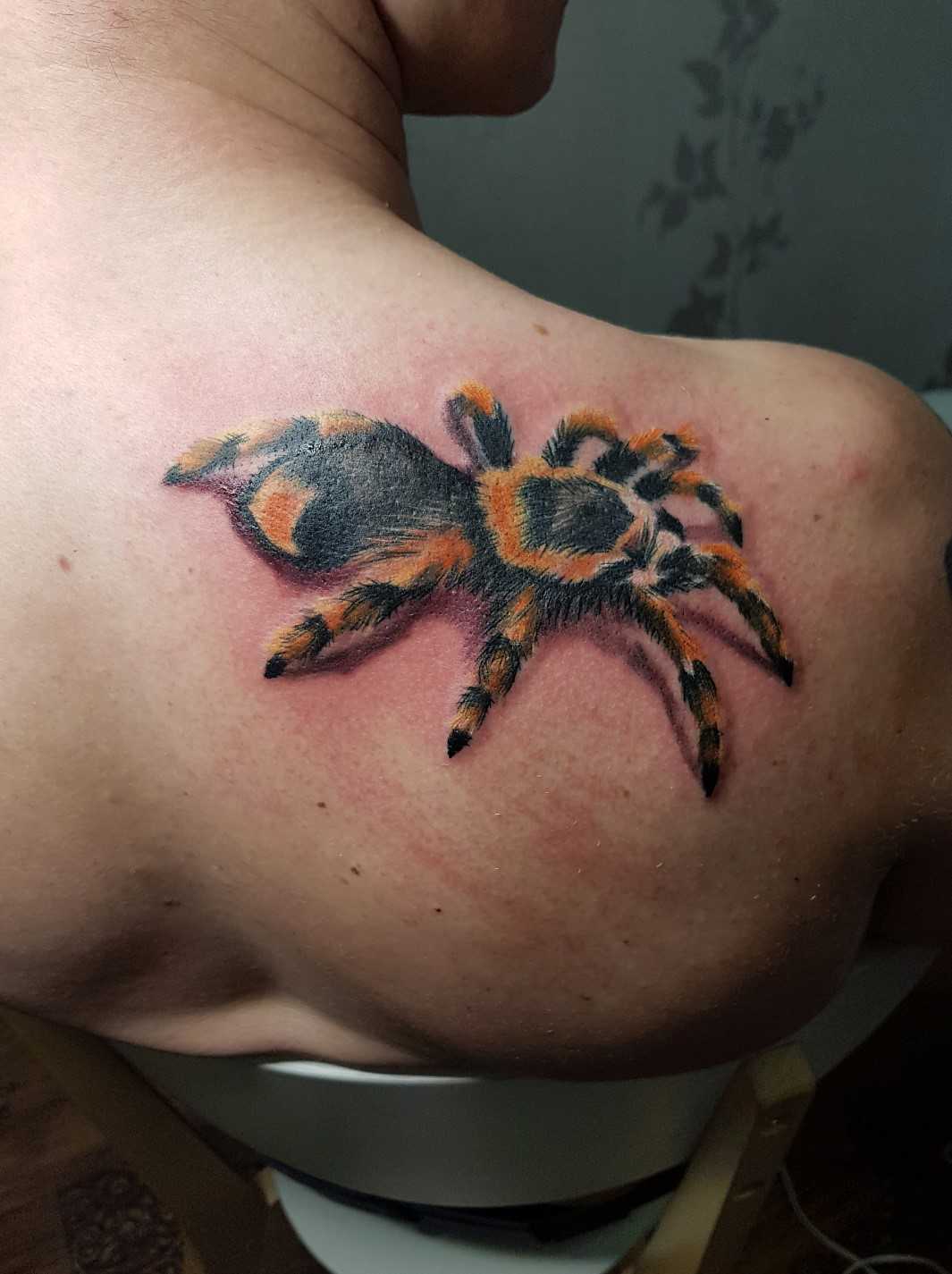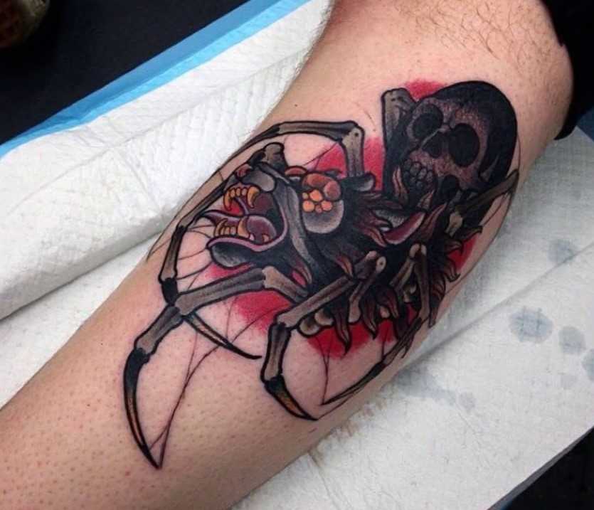 Если просмотреть фотографии в интернете, то можно заметить, что паук может отображаться на любых участках тела, при этом он может иметь разные размеры, цветовую гамму и стилевое исполнение. Большинство мужчин отдает предпочтение черно-белому исполнению, девушки же любят паука, выполненного в стиле реализм.