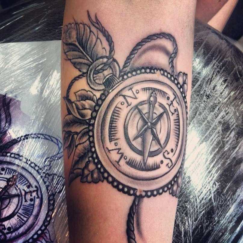 Нередко изображение компаса на теле свидетельствовало о постоянных приключениях его носителя. Кроме того, рисунок играл роль оберега, помогая найти дорогу домой. На руке девушки изображение компаса означает решительность, любовь к приключениям и наличие своих идеалов.