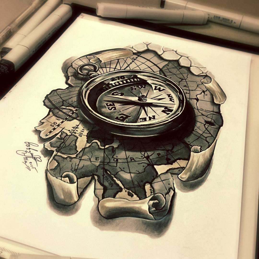 Тату Компас — Сюжеты и Эскизы Тату с Компасом